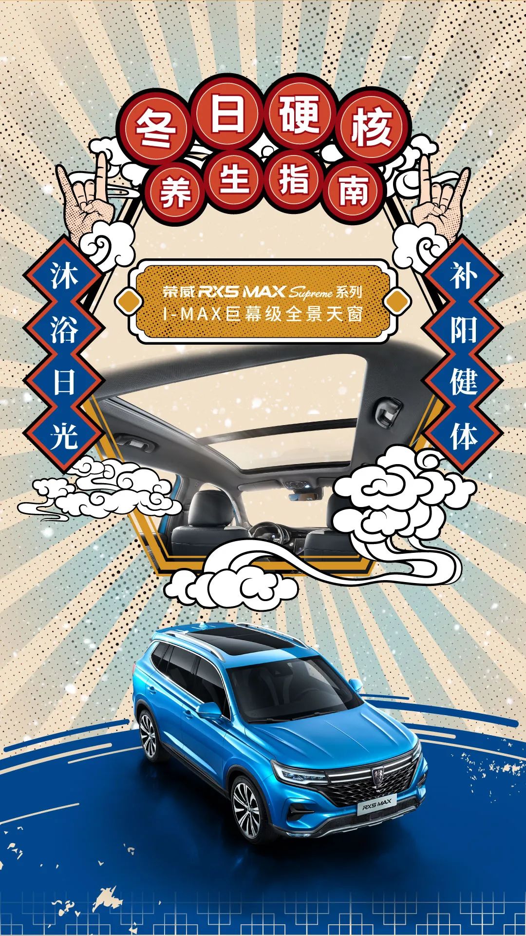 荣威RX5 MAX Supreme系列配备I-MAX巨幕级全景天窗让温暖阳光肆意洒满车内在无限暖意中,唤醒满满活力