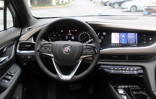 昂科旗的车内采用的依旧是我们熟悉的环抱式座舱设计,用料上使用了大量软质材料覆盖,再加上镀铬装饰件和钢琴烤漆装饰,整体的豪华感营造十分到位。配置方面,仪表盘采用的是机械指针+液晶屏模式,(高配车型是8英寸全液晶仪表盘),中控屏全系采用的均是8英寸触摸屏,搭载别克家族的eConnect智能互联系统,支持GPS、车联网、OAT等功能。
