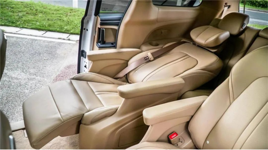 当然,加热、通风、按摩也是必不可少的,此外为了保证安全和舒适性,安全带设计在座椅上,即便放倒座椅全躺在上面,也能牢牢将乘客固定在座椅上,不会出现一些其它MPV“卡脖子”的现象。