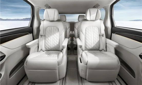 如果想要更豪华的体验,那艾维亚版本可以说同级唯一,不仅有传统的七座版,还提供了六座和四座版。这其中当属四座尊礼版为最,高级的Nappa真皮,菱形纹元素的缝线工艺、迎宾光毯和奢侈的空间,无论舒适性、奢华氛围的营造,都打破了以往我们对MPV的认知。