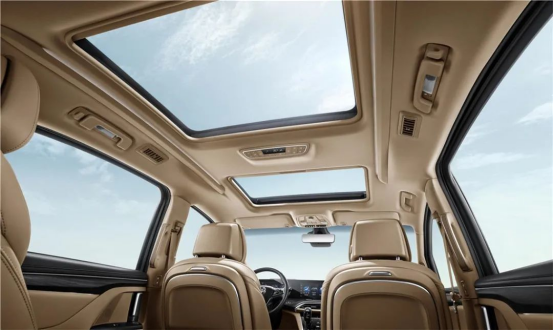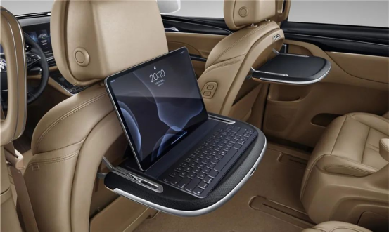 除此之外,电解锁的前后移动、防夹双侧电动滑移门、折叠小桌板、USB接口及230V电源、全景天窗、后排空调出风口、后排空调控制等等一应俱全,如果加上一套茶具,就像一个小型的移动办公室。