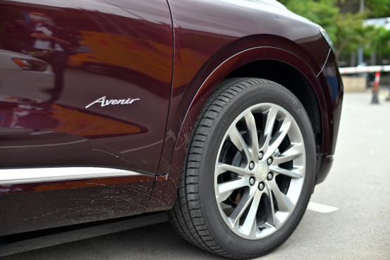 车身侧面采用雕塑美学设计,前门外侧与迎宾踏板处烙有Avenir艾维亚专属车标,彰显尊贵身份。配合流畅的车顶设计以及米其林21吋265/45轮胎搭配高端喷涂工艺铝合金轮毂,强调车轮力量的立体型面,迸发出蓄势待发的力量感,并进一步提升稳定性和安全性。车身采用艾维亚专属的梅洛酒红色,整体凸显出别克昂科旗兼具运动与优雅的独特气质。