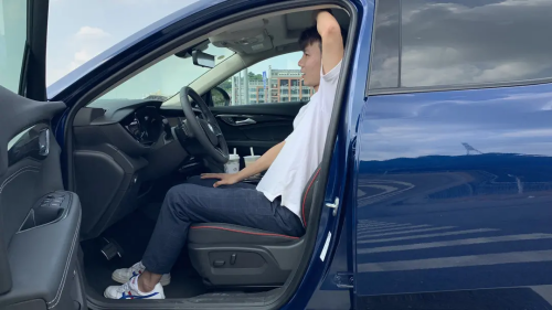 昂科威S GS座椅触感细腻,红色的滚边配合黑色的材料有利于提升车辆视觉效果,而整体乘坐感觉依然是跟普通车型别无二致。