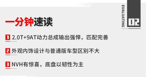 变速箱使用9AT变速箱,在2018年获得“龙蟠杯”世界十佳变速器称号,在90km/h即可挂入9挡,更绵密的齿比更宽广的齿比范围让车辆在任何工况下都有绝佳表现。