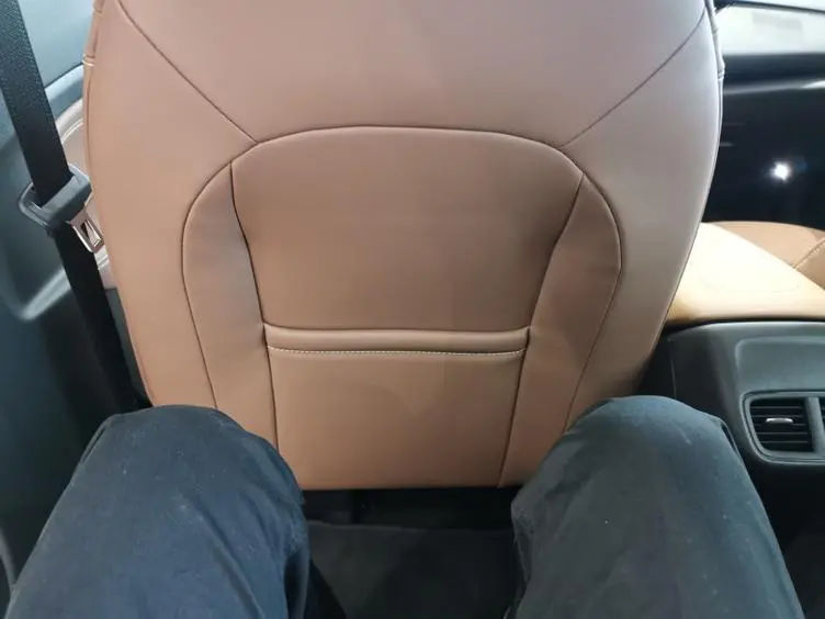 乘坐上去给人一种宽敞的感觉,皮质的座椅包裹性很高也很舒适,座椅采用电动调节,棕色的内饰很好看吧?