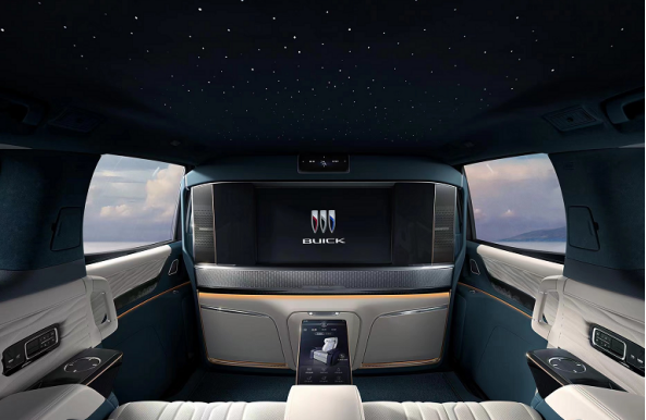 看到别克GL8世纪CENTURY的内饰,能让你知道什么叫极致的豪华享受,目前官图仅展示了后排的内饰样式,但前排将会配备全液晶仪表盘+中控屏组成的曲面双联屏设计,方向盘将采用的是四辐式的多功能方向盘。而第二排采用的是隔断的设计,与前排完全独立,映入眼帘的就是那块可升降的幕墙,座椅采用的是独立的航空座椅,各种高级功能都有配备,再搭配上星空顶,整体营造出了一个豪华舒适的私人空间。