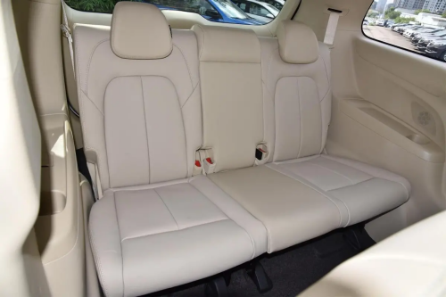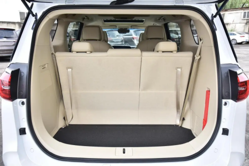 结合车身尺寸的表现,别克GL8的车内空间自然不需要多做介绍。值得一说的是第三排,因为有着更长车身长度和轴距,在将第二排座椅调整至合适的位置,我178cm的身高坐在第三排是有着一拳多的腿部空间,两侧提供有扶手箱和杯座,并且配备有较大尺寸的车窗,使坐在第三排的乘客并不会感动空间紧凑。因为采用2+2+3座椅布局,第三排满载时的空间表现比较一般,所以可以当做“六座车”使用。后备厢的常规容积是521L,同级少有车型能比它更大,日常使用不是问题。