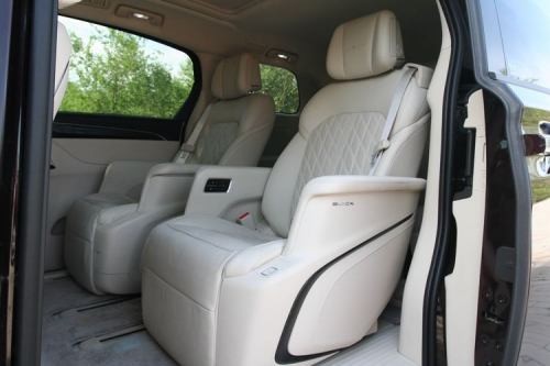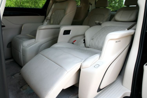 这次试驾的,是GL8的次顶配,这款6座贤礼版的第二排座椅,不仅具备8向电动可调,还拥有加热、通风和按摩功能,并可与腿托配合,基本形成一张“床”。至于杯架、USB接口、12伏电源、220伏电源,一应俱全。