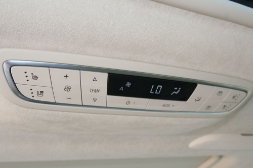 除了前排座的双区空调,后排座还拥有独立的空调,三区空调具备空气净化、PM2.5过滤、负离子发生器,并装备有空气质量管理系统,控制面板位于车顶处。另外,从下图可以看出,它的内饰是麂皮绒面材质,显得很高档,这是艾维亚车型的专属配置。