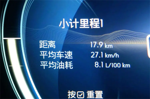 试驾第1天早上,当我把车从家开到公司,仪表显示平均油耗8.1升,这是在为期3天的试驾中,我所看到的的最高油耗。家到公司的这段路,由于路口特多,全程平均时速很难超过30公里,如果用SUV的话,大致在10-12升之间。