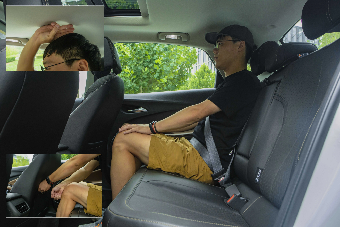 后排座椅坐姿稍高,对大腿和腰部的支撑充足,且靠背角度合理,视野良好。体验者身高175厘米,头部空间剩余3指左右,腿部空间超过两拳,表现十分充裕。