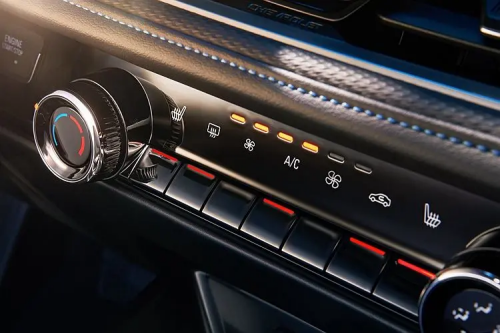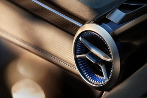 内饰做工方面,很多细节都显得颇为精致。比如,空调出风口,以飞机引擎为灵感,设计成带银蓝镭雕状饰条的炮筒造型,精致且充满力量感。
