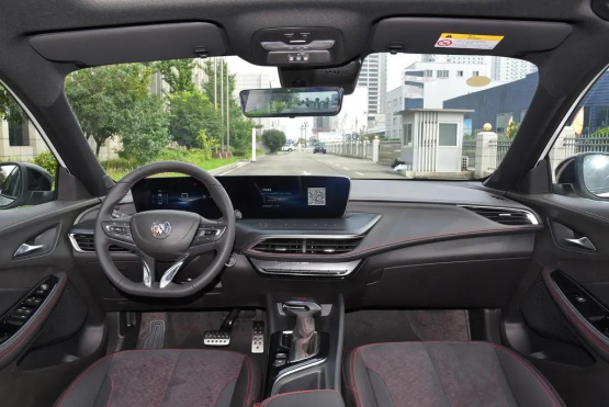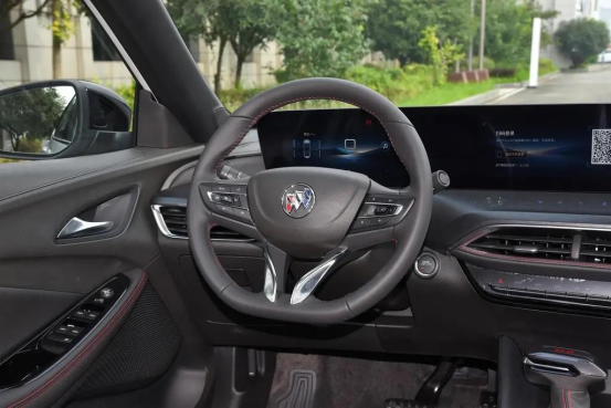 坐进别克威朗的车内,同样将家族全新设计语言应用其中。双联屏的设计,使得内饰座舱的前卫科技感达到了新高度。通过实拍图可以看出,红色缝线的加入,给其增添了几分高级运动感。并且根据个人的实际体验,得益于皮革材质加以包裹,另外皮革表面加入了类似鱼鳞的纹路,手感还是挺细腻的。