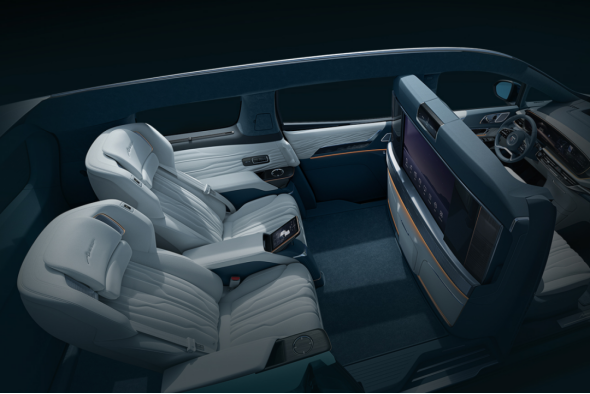 对于定位于旗舰级豪华MPV的别克世纪CENTURY而言,后排奢华与静谧"私享空间"绝对是新车最大的亮点之一。别克世纪CENTURY四座版车型配备了32英寸可升降智能屏,当大屏完全升起,后排乘客可拥有完全独立的私享空间。