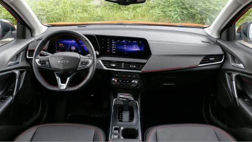 来到车内,新款创酷RS和老款相比确实是进步非常多。中控屏由原来那个小小的独立屏幕变成了现在流行的双联屏样式,首先观感好了很多,其次是功能性方面,这个中控现在搭载了全新的小雪OS智能车联系统,能支持包括语音、三指飞屏这样的功能,而且还有无线CarPlay,实用性属于主流水平。