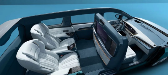 创新打造的160度云感座椅不仅豪华舒适、功能强大,更将真挚“匠意”细腻呈现。超大尺寸的宽体座椅由Fine Nappa半苯胺高级打孔真皮包裹,拥有可延伸式电动腿托和电动翻展式脚踏,延伸后总长度可达616mm。座椅提供18向全电动调节、5大分区加热和18点分区指感按摩功能,其中,颈托和脚踏还采用了石墨烯加热技术,带给乘客如置身云中般的安然惬意体验。同时,中央扶手8吋智控屏单独由1颗高通骁龙8155芯片提供算力,可轻松掌控智慧幕墙、座椅、门窗、空调、音响等功能。