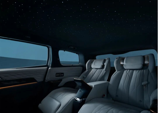 若想深度放松休憩,160度云感座椅可一键“躺平”,此时亦能够更好地欣赏流星雨星空穹顶带来的浪漫情境。麂皮顶衬上的528个星点可模拟璀璨逼真的星空效果,提供迎宾、浪漫、冥想等多模式选择,以及晨星、银河、繁星等多场景模拟,未来还可借助OTA升级更多功能。