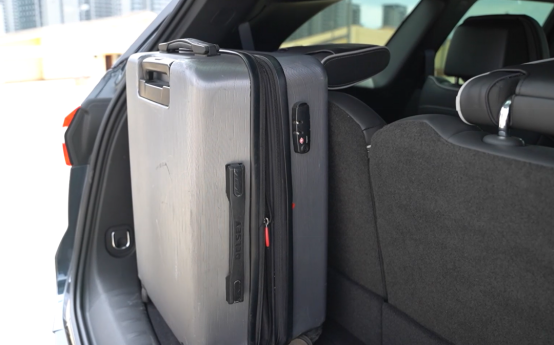 接下来看看后备箱空间。当第三排座椅竖起来时放两个登机箱刚刚好,另外还可以电动放倒它,放倒后容积瞬间增大三倍,而且后备箱开口比较大,离地高度也比较合理,取放物品算是很方便了。如果人少的自驾游会更轻松,甚至去一些偏远地区时,把第二排座椅放倒还能在车上将就一晚,前段时间独库公路一晚住宿炒到天价,睡车里它不香吗。