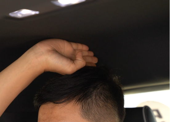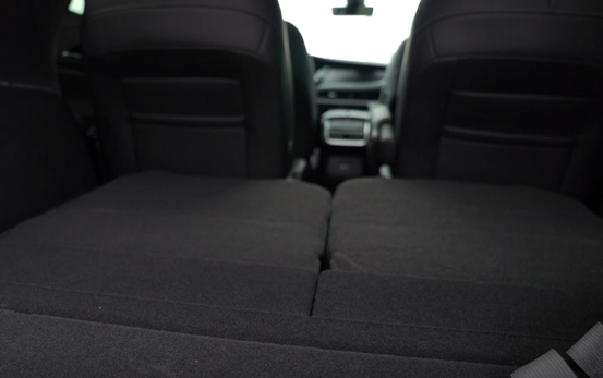 现在我就把扶手放下去进入第三排感受,首先通道的宽度比较合适,出入第三排确实比七座方便很多。落座第三排后发现座椅和七座版本基本差不多,舒适性自然没有第二排好,体现在腿部承托一般,不过背部支撑比日系七座SUV要强一些,加上腿部和头部空间都还不错,也基本够用。