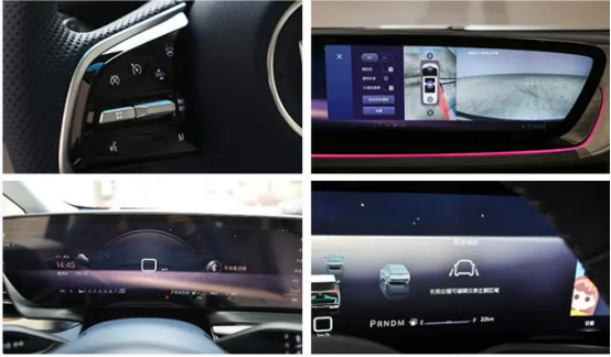 可以说新车的内饰氛围无论从科技感还是豪华程度都对得起这个价位,30英寸一体弧面大屏支持6K分辨率,功能强大的同时使用流畅度是十分出色,相比常见的联屏设计,新车采用的是一整块完整大屏,在同级车中屈指可数,甚至可以媲美“百万级豪车”。新车除了使用大量高档面料以外,像星空纹路、木质纹路以及打孔皮质等细节上的处理也使整体车内氛围仪式感爆棚。