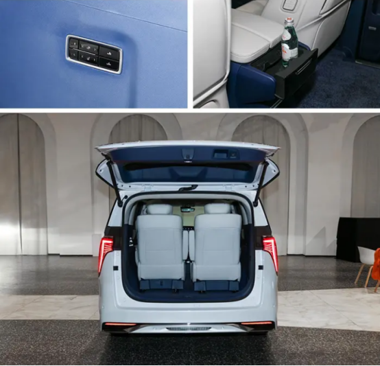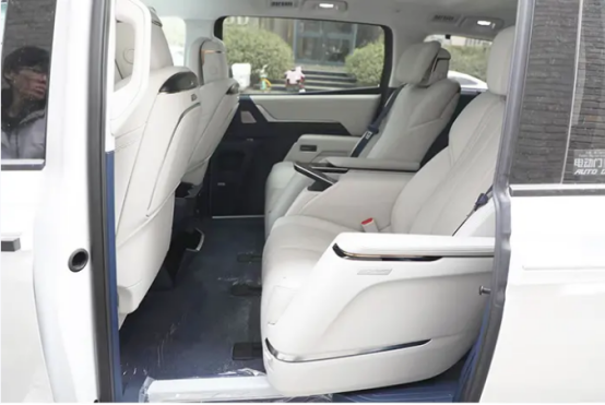 新车定位中大型MPV,车身尺寸方面,长宽高分别为5230/1980/1867毫米,轴距为达到了3130毫米。长度、宽度和轴距都超过了丰田埃尔法,而不到1米9的高度也是为进入地库等封闭场所而考量。丰富的储物空间也是新车的一大亮点,而且连储物格内部都融入了植绒材质,细节上可谓拿捏的相当到位,后备箱能够直接控制第三排座椅,这个设计感觉相当贴心。