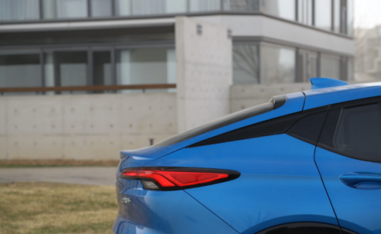 修长的前翼子板和C柱锐利的线条勾勒,让整个车侧呈现出一种蓄势待发的动感。分体式设计的后尾灯组与前大灯形成了呼应,刹车灯和示宽灯在上方,转向灯与雾灯设计在下方。溜背式的线条与自然形成的小鸭尾,也是昂扬车尾的点睛之笔。