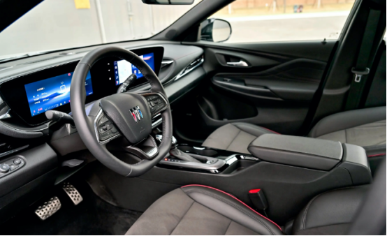 内饰方面,昂扬采用了环抱式风格的座舱、双10.25英寸高清大联屏,再加上软性材质的覆盖的仪表台,视觉感受紧随潮流。新换装的别克Logo也出现在了D字形方向盘上。