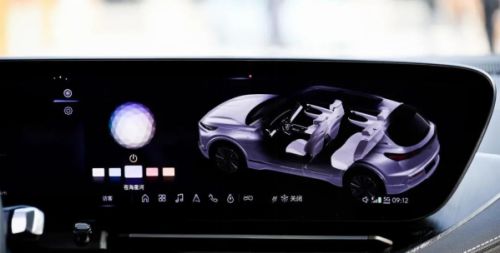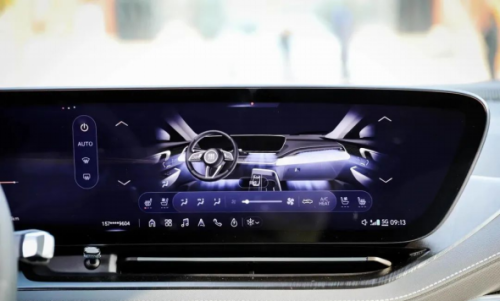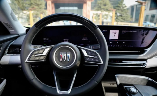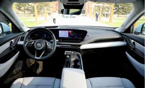 过去我们对美系车内饰塑造的印象,一般都跟粗犷不羁、不够细节离不开关系。不过在进入电气化时代后,美系的电动车开始注重起了豪华和细节,在这台别克 E5 上也有着很多体现。 首先来看中控仪表的布局,别克 E5 采用了 30 吋的一体式弧形曲面屏,其综合分辨率达到了 6K。这套中控布局和凯迪拉克 LYRIQ 有些类似,只是别克的屏幕放置方向与凯迪拉克相反。可以说,别克 E5 第一眼给人的内饰豪华程度不输凯迪拉克 LYRIQ。
