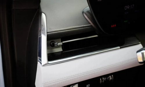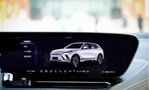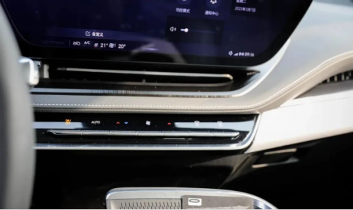 在中控岛的前方,别克 E5 保留了用于调节空调以及前后风挡加热的实体触控按键,在按下时还会伴随语音提示和震动反馈。 值得一提的是,别克 E5 的空调出风口调节也保留了物理控制机构,并且采用的是比较精致的拨杆式调节,这些小细节都能够为别克 E5 增添豪华氛围。 此外,别克 E5 的中控饰板还采用了 Décor 光舞晶阵的设计,官方表示其原理是基于多层衍射的光学原理,采用镭雕工艺实现局部透光效果,在此基础上别克 E5 还提供了 121 色的音乐律动氛围灯,在夜晚行驶时能够提供更动感和有氛围感的视觉效果。 回到座舱最重要的中控部分,别克 E5 搭载了全新一代 VCS 智能座舱,为其提供驱动的是当下旗舰的高通骁龙 8155 车机芯片。
