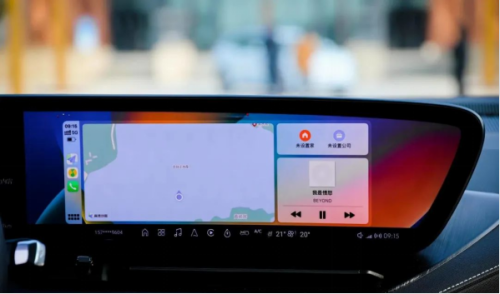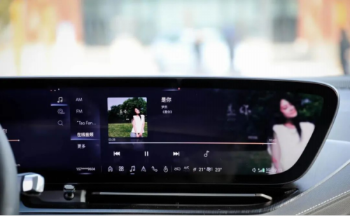 在一些关于车辆功能的设置页面上,VCS 智能座舱提供了 3D 车模、车辆内饰建模为视觉中心的页面,能够带给用户更强的沉浸式交互感。 在音乐界面,别克的软件团队充分利用了这块 30 吋屏幕的视觉优势,以专辑封面的模糊效果作为底层填满整个屏幕,给人的第一感觉是界面精美、有视觉冲击力。