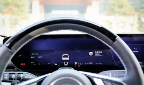 位于方向盘前方的是 E5 的 HUD 槽,其尺寸为 12.6 吋,官方表示该 HUD 支持多种显示模式,亮度可随环境光自动调节。