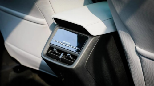 来到座椅配置方面,别克 E5 采用了皮质座椅,官方表示新车座椅采用了专为电动车开发的骨架平台,坐垫宽度最宽达到 520mm 。  后排配置方面,别克 E5 提供了双空调出风口,在出风口下方还有着后排的数据和充电接口,除此之外我们拍摄的这台 E5 后排没有其他科技或者舒适配置,在后排的豪华程度上差点意思,更偏向实用主义。 不过在音响配置上,依然能够彰显别克 E5 的豪华程度在线。新车搭载了 14 扬声器的 Bose Centerpoint 2 虚拟环绕声技术车载音响系统。