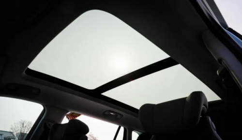 再往头上看,别克 E5 全系配备了全景穹顶天窗 ,采光面积达 1.32㎡,可开启的前玻璃最大行程达 580mm ,对比不可开启的天幕式,其实我更喜欢这种偶尔可以放放风的全景天窗。