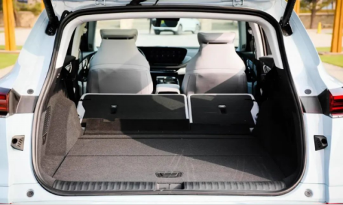 后备箱方面,官方数据显示新车后备箱容积为 502L-1658L ,实际观察后备箱的空间符合一台踏实家用车的地位,并且后排座椅支持 4/6 比例放倒,拥有不错的空间灵活性。
