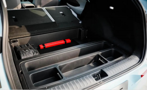 值得一提的是,将 E5 的后备箱地台隔板打开后,其下方还有着一处存放安全工具和可以放置物品的暗格,日常储存一些工具会比较方便。