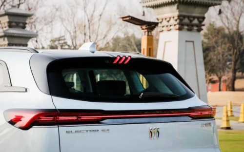 轮毂方面,别克 E5 采用了 20 寸多辐式的低风阻轮毂设计,匹配的轮胎是米其林 e-PRIMACY 系列,兼顾静音和舒适,轮胎规格为 245/50 R20。 车尾方面,新车采用了“流光飞翼”式的贯穿尾灯设计,顶部的黑色扰流板和高位刹车灯给这台家用 SUV 融入了一些动感的气息,不过新车整体还是走家用踏实的风格。