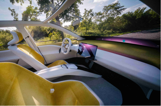 BMW新世代概念车重新诠释了品牌的标志性设计元素,如BMW双肾格栅和天使眼大灯,将车头变为互动区域。当人走近车辆时,便会触发精确的3D动画灯光效果,与爱车进行直观互动。侧窗下部的E Ink元素是车外欢迎场景的又一特色,可将人的视线引向车门自动开启的传感器区域。车尾灯也采用了类似的创新技术,3D打印的灯光元素以独有方式进行控制,营造出富有层次感的灯光效果,给人留下独特的深刻印象。