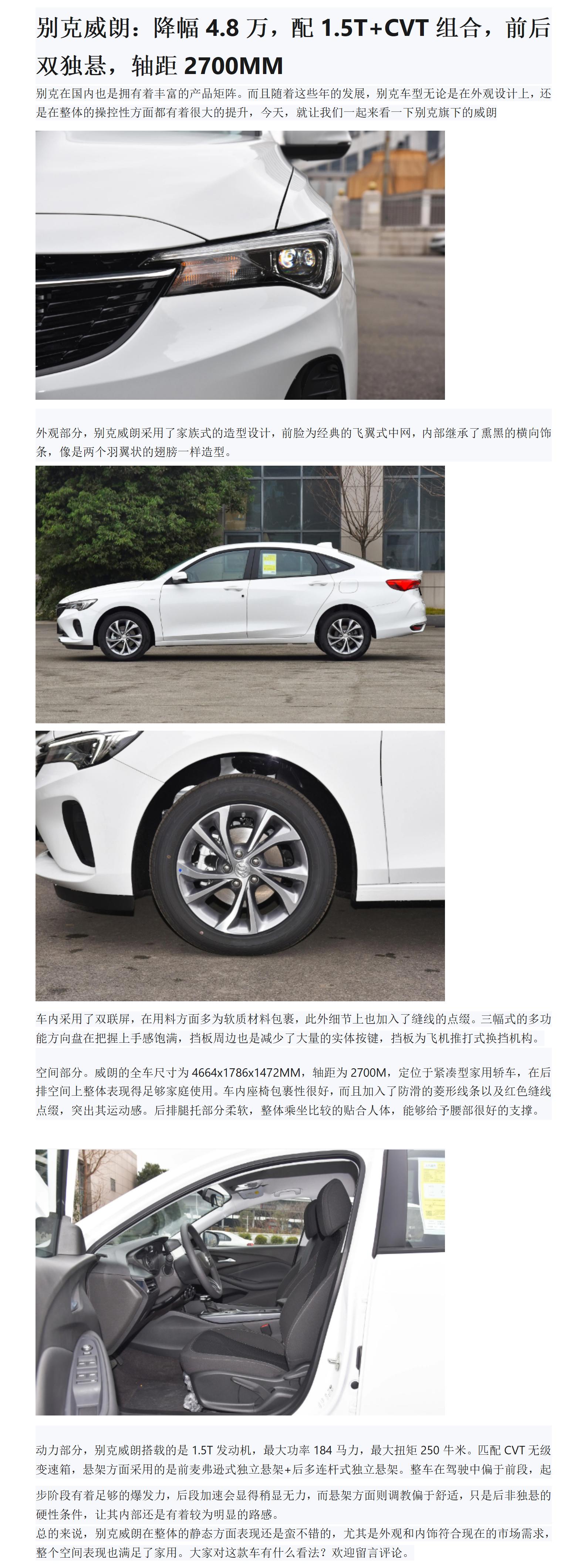 别克威朗:降幅4.8万,配1.5T+CVT组合,前后双独悬,轴距2700MM