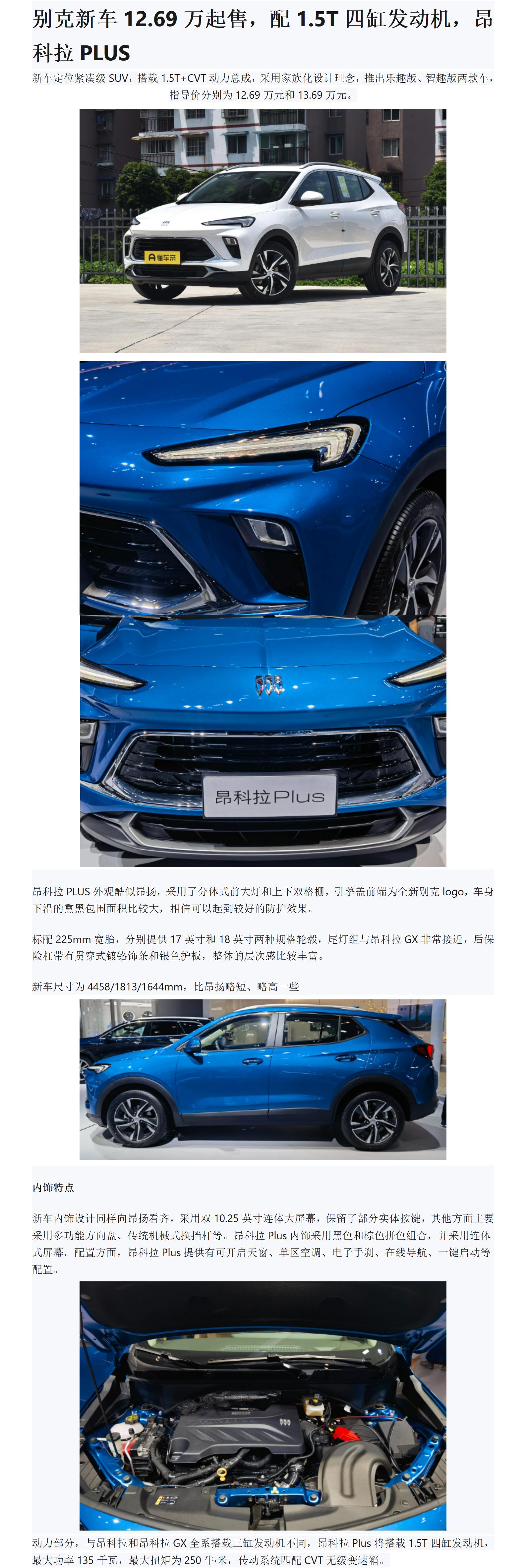 别克新车12.69万起售,配1.5T四缸发动机,昂科拉PLUS