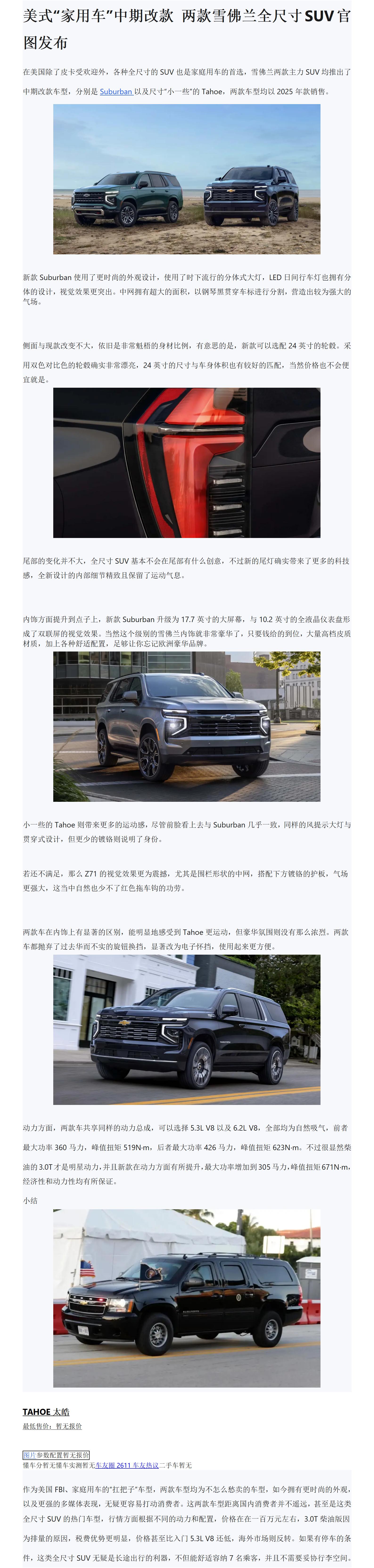 美式“家用车”中期改款 两款雪佛兰全尺寸SUV官图发布