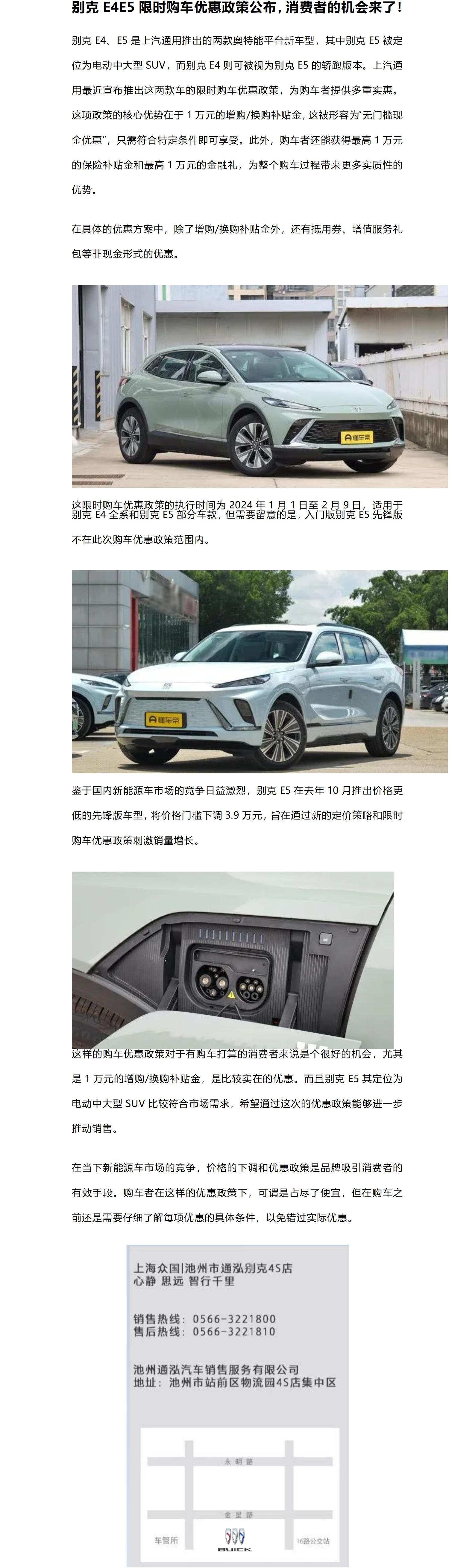 别克E4E5限时购车优惠政策公布,消费者的机会来了!