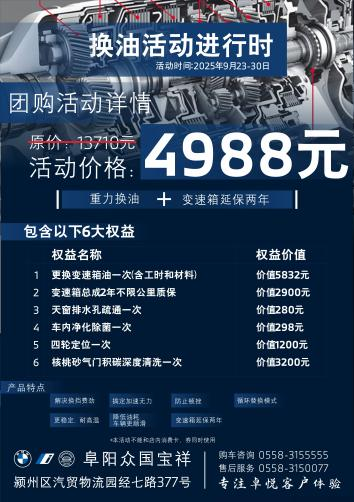 阜阳众国宝祥 BMW售后变速箱换油活动进行时!